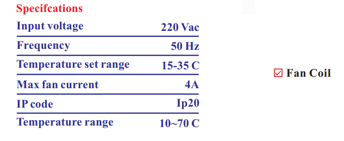دارای رله خروجی ۵ آمپر ,مناسب انواع الکترو موتورهای فن کویل