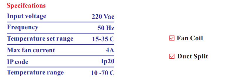 دارای رله خروجی ۵ آمپر ، مناسب انواع الکترو موتورهای فن کویل و داکت اسپیلت ، گرمایش از کف و …